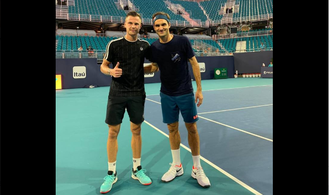 A 20-szoros Grand Slam-bajnok svájci teniszező pedig amint megérkezett Kaliforniából Floridába, bizony Fucsoviccsal “ütötte be” a torna új helyszínének új centerpályáját, a Hard Rock Stadiumot. A magyar teniszező be is számolt a nem mindennapi edzésről Facebook oldalán: