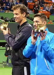 A cseh duó az első játszmában összesen 6 pontot veszített adogatóként, a 31 percig tartó szettet 6:2-re nyerték. A második játszma elején rögtön breakelőnybe kerültek Berdychék, 3:0-ás vezetésre tettek szert, majd 6:4-el zárták le a játszmát és egyben a mérkőzést. Berdychnek és Hajeknek eddig 1-1 páros tornagyőzelme volt pályafutásuk során – Berdych 2008-ban Rotterdamban Tursunovval, Hajek pedig 2007-ben Münchenben Levinsky oldalán tudott nyerni. Győzelmüknek köszönhetően 60 400$-on és 250 ranglistaponton osztozhatnak.