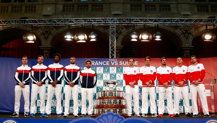 A salak az a borítás, ahol a szerva-röpte játék a legkevésbé érvényesülhet, és ahol kevésbé lehet szórni az ászokat. Összességében nem előnyt szerzett ezzel Franciaország, hanem kiegyenlítették a viszonyokat, mert nekik sokkal több idő állt rendelkezésre a felkészülésre, míg Federer és Wawinka egy hete még teljesen más körülmények között készültek a világbajnoki elődöntőjükre. Ezt pedig a kékek ki is használták, bár akkor még nem is sejtették, hogy Federer lesérül a döntőre. Sok pletyka látott napvilágot, és a közvéleménynek fogalma sem volt, hogy Wawrinka és Federer jóban vannak-e, Wawrinka helyrejön-e fejben, és hogy Federer háta rendbe jön-e a döntőre. Az első napon megkaptuk a válaszolkat.