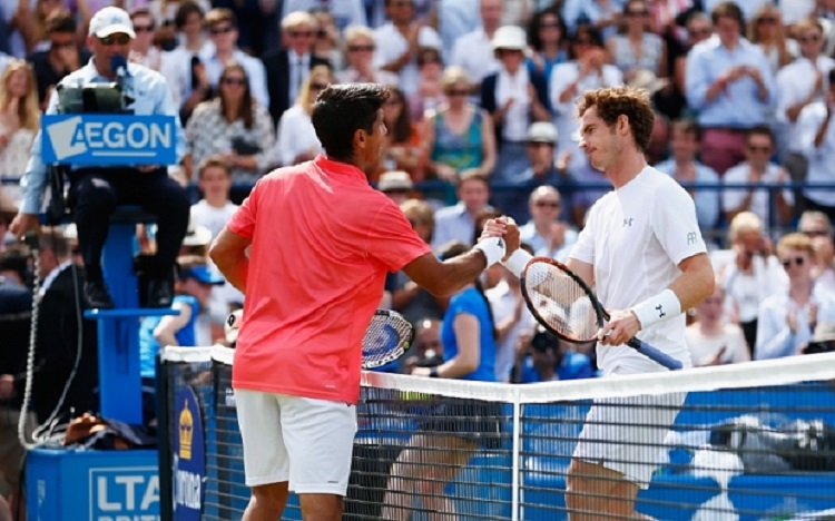 Londonban a nap első meccsét a címvédő Grigor Dimitrov (6.) és Gilles Müller játszotta. Az ígéretes bolgár ebben az esztendőben csak árnyéka tavalyi önmagának, Müller pedig élete egyik legjobb teniszét játssza mostanság. Nem volt tehát esélytelen a balkezes luxemburgi, akinek nem csak az erőviszonyok, hanem a játéka kis kedvező körülményeket teremtett. A meccs prototípusa volt, annak az esetnek, mikor egy tehetség (végre valahára) az egyik évben berobban az elitbe, de a következőben, talán a dolgok fel nem dolgozottsága miatt, mentális okokból nem tud olyan meccseket hozni, amiket alapvetőlen kéne. Most is, az elején Dimitrov szépen kontrollálta a játék menetét, három breaklabdája volt az első szett elején, de ezeket nem használta ki. Amikor pedig a szettben maradás volt a tét, Müller az első fogadóelőnyét értékesíteni tudta. A második játszma break nélkül zajlott, majd a rövidítésben a bolgár miután megnyerte az első 3 pontot, mégsem tudott egyenlíteni, így kiesett. Gilles Müller nem mellesleg zsinórban a második alkalommal győzte le Dimitrovot, legutóbb ez év februárjában, Rotterdamban. Jó kérdés, mennyire lehet partiban majd a luxemburgi Andy Murray (1.) ellen, aki nagy nehezen győzte le Fernando Verdascot. A skót számára jól indult a játék, viszont azok után, hogy 3/0-val kezdett, nem csak a szettbe, hanem az egész meccsbe visszahozta a spanyolt, és végül kettő, de nagyon szoros játszmában nyert.