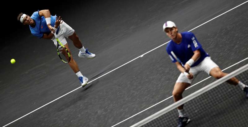 A napot végül egy páros mérkőzés zárta, amin pályára lépett a világelső, Rafael Nadal is. Az abszolút hazai pályán szereplő cseh Tomas Berdych volt a partnere. Az Öreg Kontinens előnyét azonban nem tudták növelni, Jack Socknak és Nick Kyriosnak hála a Világ csapata szépített, champions-tie-breakben.