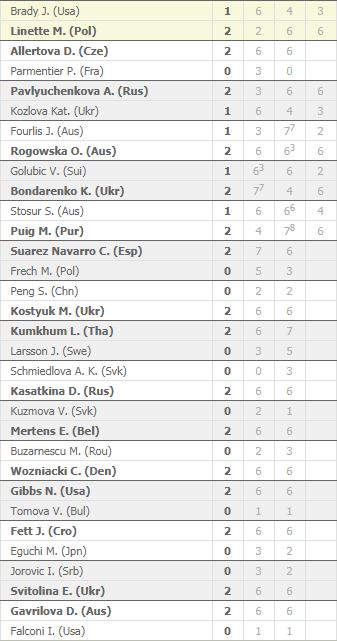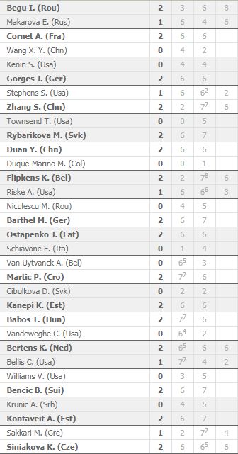 A mai nap alighanem bekerül az amerikai női tenisz fekete napjai közé. A tavalyi finalista Venus Williams, a US Open bajnok Sloane Stephens, a tavalyi melbourne-i és new yorki elődöntős Coco Vandeweghe kikapott, és szintén az első fordulóban búcsúzott CiCi Bellis, Jennifer Brady, Sofia Kenin, Alison Riske, Taylor Townsend és Irina Falconi is. Egyedül Nicole Gibbs élte túl az első kört, de neki sincs túl sok esélye a folytatásban.