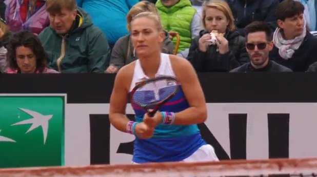 Hatalmas csatában 6-3 7-6-ra verte Babos Tímea a hazai közönség előtt pályára lépő Sara Erranit. A mérkőzést a rutinos olasz kezdte jobban, gyors breakváltást követően előnyre tett szert, de az eső beleszólt a folytatásba, és a szünet a magyar játékosnak jött jól. Timi gyorsan egyenlíteni tudott, majd a nyolcadik játékban ismét elvette Errani adogatását, és 6-3-mal behúzta az első szettet. A folytatásban az olasz játszott jobban, hamar breakelőnybe került, és 5-4-nél a játszmáért adogathatott. Timi ekkor újra elkapta a hazai játékost, és rövidítésre mentette a szettet. A tie-breakben ismét Errani került lépéselőnybe, és 6-5-nél játszmalabdához jutott. Babos egy látványos labdamenet végén egyenlített, majd pedig a következő két labdamenetet is hozva behúzta a szettet. Timi sok hibával, és néha idegesen teniszezett, de ez most elegendőnek bizonyult a rutinos olasz ellen.