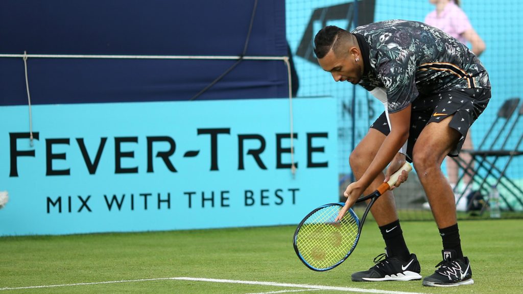 Nick Kyrgios kihagyta a Roland Garrost, de a füves pályás szezonra újra felszívta magát. Csütörtökön Queens-ben a korábbi esőszünetek miatt két mérkőzést is játszania kellett, így számítani lehetett arra, hogy kifejti majd a nemtetszését egy-két dologgal kapcsolatban. Így is lett.