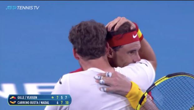 Elveszíthet-e Rafael Nadal három rövidítést egy nap? A válasz nem. A világelső játékos, Carreno Busta oldalán magabiztosan, 10-7 re hozta a mindent eldöntő tie-breaket, ezzel pedig ők jutottak az ausztrálok elleni elődöntőbe.