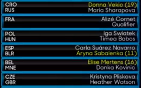 Így már csak Babos Tímea maradt versenyben, de a soproni lány nem volt szerencsés a mai sorsolás alkalmával. Timi az első körben a fiatal Iga Swiatek ellen kezd. A 18 éves lengyel juniorként sikert sikerre halmozott, és már a felnőttek között is letette a névjegyét. Amennyiben Timinek sikerül legyőznie Swiateket, úgy a második fordulóban a fehérorosz Aryna Sabalenkával találozhat.