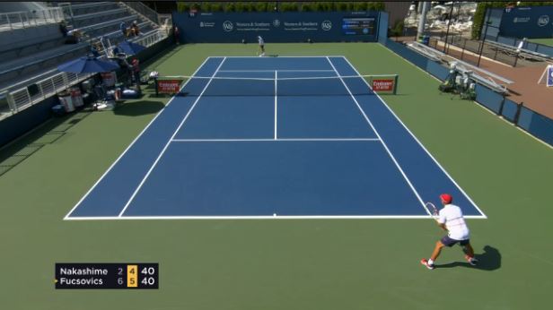 A magyar játékos az első játszmában 2-2-nél egy maratoni játékban hozta az adogatását, ez pedig döntőnek bizonyult, Fucsovics a következő négy játékot megnyerve 41 perc alatt 6-2 arányban hozta a szettet. A második felvonásban is 2-2 után dőlt el a játszma sorsa. Marci a szett derekán breakelni tudott, és az előnyét megőrizve 6-4-gyel lezárta a mérkőzést.